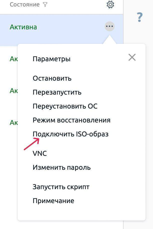 Для работы с ISO-образами можно использовать панель управления сервером. Она доступна для всех наших виртуальных серверов.